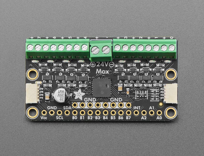 Control up to 8 solenoids at a time with this I2C to GPIO expander board.